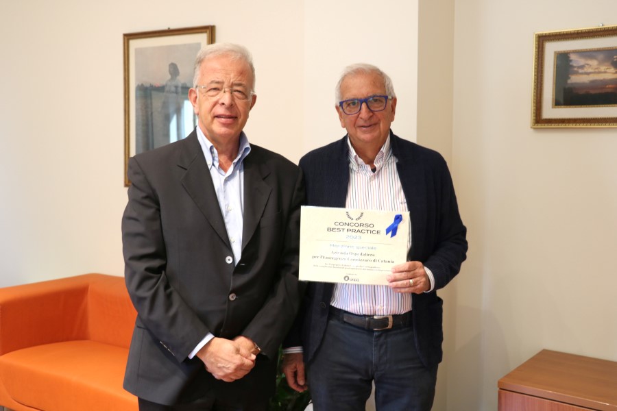 L’Azienda Ospedaliera per l’Emergenza Cannizzaro di Catania è uno dei due centri della Sicilia ad avere ricevuto una menzione speciale nell’ambito del concorso sulle best practice nell’assistenza e nel post trattamento del tumore della prostata. Il riconoscimento, promosso dalla Fondazione Onda, è stato consegnato a Milano nel corso dell’evento nazionale cui hanno preso parte il commissario straordinario dott. Salvatore Giuffrida e il direttore dell’UOC di Urologia dott. Michele Pennisi.