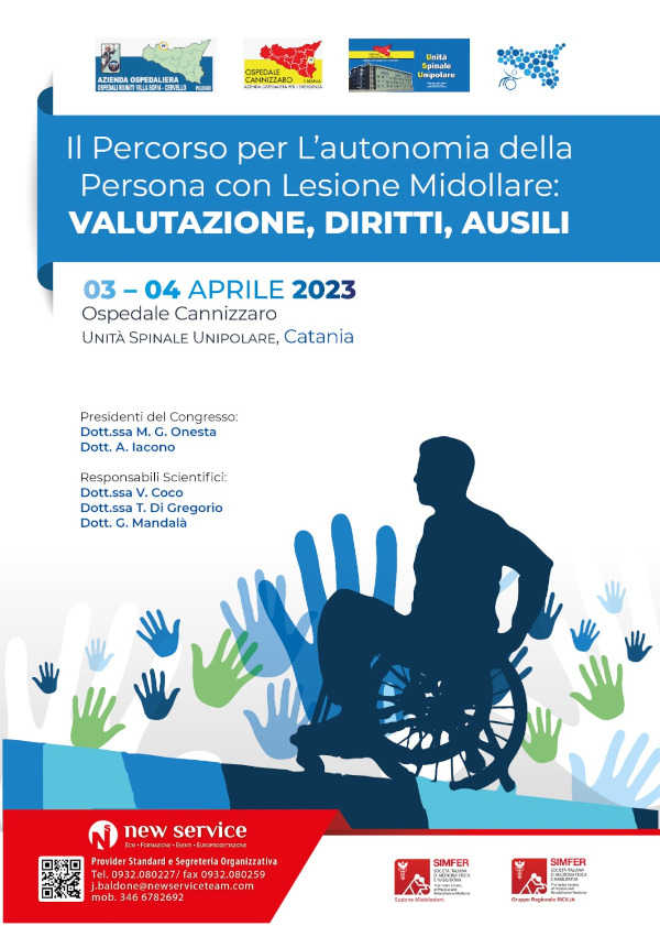 L’evento è stato accreditato al Ministero della Salute dal Provider New Service S.r.l. per 100 discenti: medico chirurgo, (Medicina fisica e riabilitazione, medicina dello sport, neurologia, chirurgia plastica e ricostruttiva, neurochirurgia, ortopedia e traumatologia, urologia, anestesia e rianimazione), logopedista, terapista occupazionale, fisioterapista, infermiere e tecnico di neurofisiopatologia. All’evento sono stati assegnati 11 crediti formativi ECM (Educazione Continua in Medicina). Il 3 aprile, a Lercara Friddi, nell’ambito della manifestazione «Inclusione e legalità», si svolgerà la premiazione degli alunni dell’istituto comprensivo «Alfonso Giordano» che hanno partecipato al concorso «Crea un logo per l’ufficio del garante della persona con disabilità di Lercara Friddi». «Questa sarà anche l’occasione per fare un’opera di sensibilizzazione in provincia di Palermo nella Giornata Regionale della Persona con Lesione al Midollo Spinale – conclude il dott. Iacono – distribuendo ai circa 500 componenti della scolaresca, gadget e brochure divulgative sulle mielolesioni».
