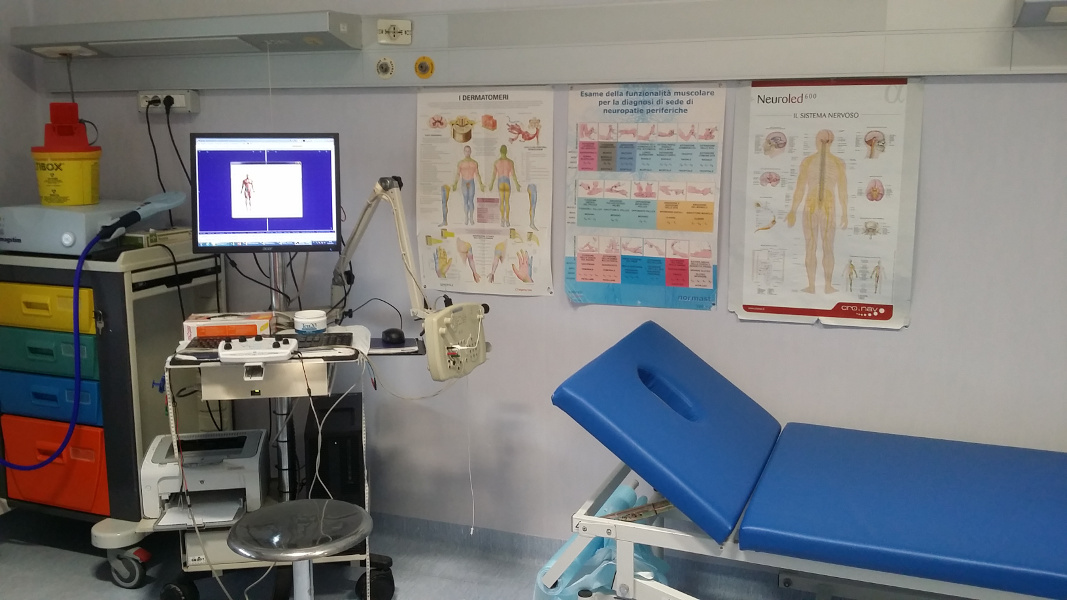 - Neurofisiopatologia (elettroencefalogramma in veglia e sonno, elettromiografia, potenziali evocati motori, somatosensoriali, visivi ed acustici)